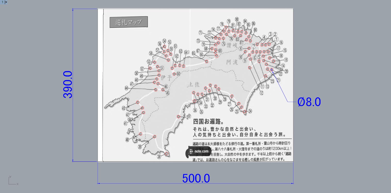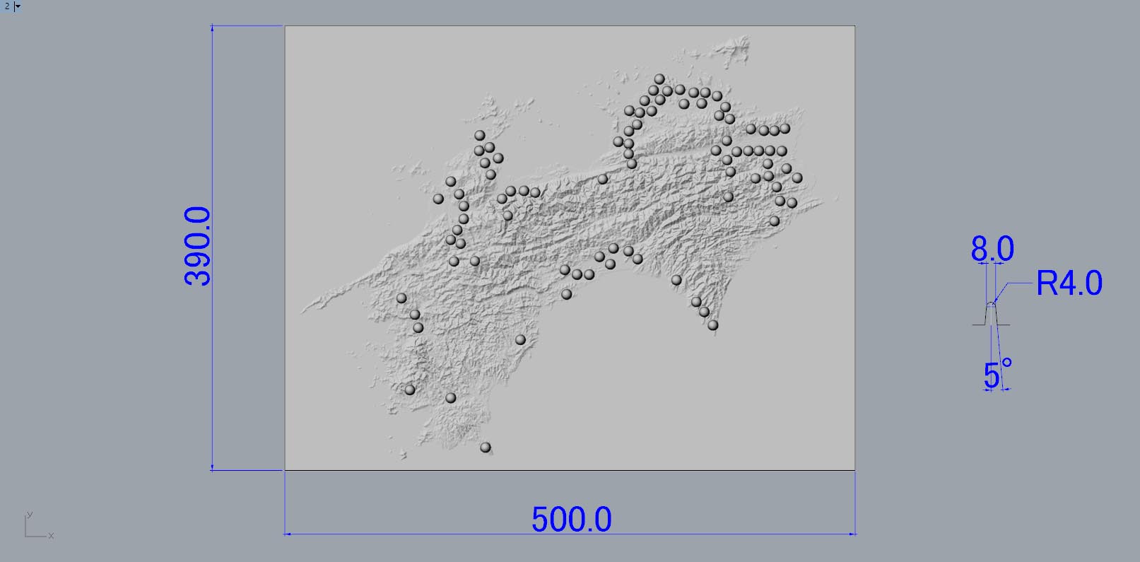 実際に樹脂を流して反転すると見事に四国地図+88ヶ所を再現できました。