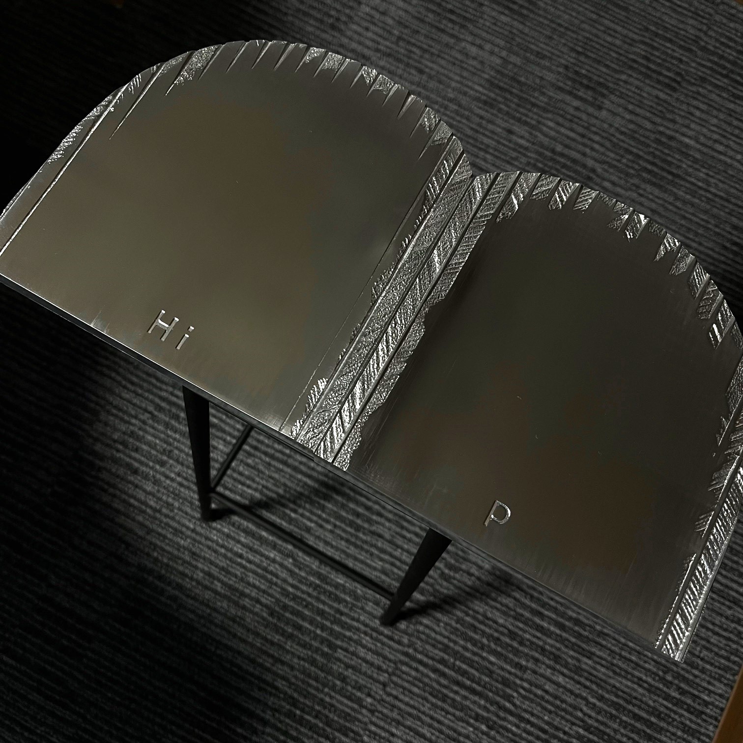 ハイスツール Hi-P ・2024年12月 大阪産業創造館/アップサイクル技術展に出展の際に製作。 ・廃棄予定となっていたアルミプレス金型をアップサイクル ・金型表面の模様をなだらかに切削加工で落として、座面を形成 ・Hi-Pを彫刻 廃プレス型 → Hi Press → Hi-P(ヒップ-お尻) 以下、製作過程です。 廃をHiに変えるアップサイクルに取り組んでいきます。